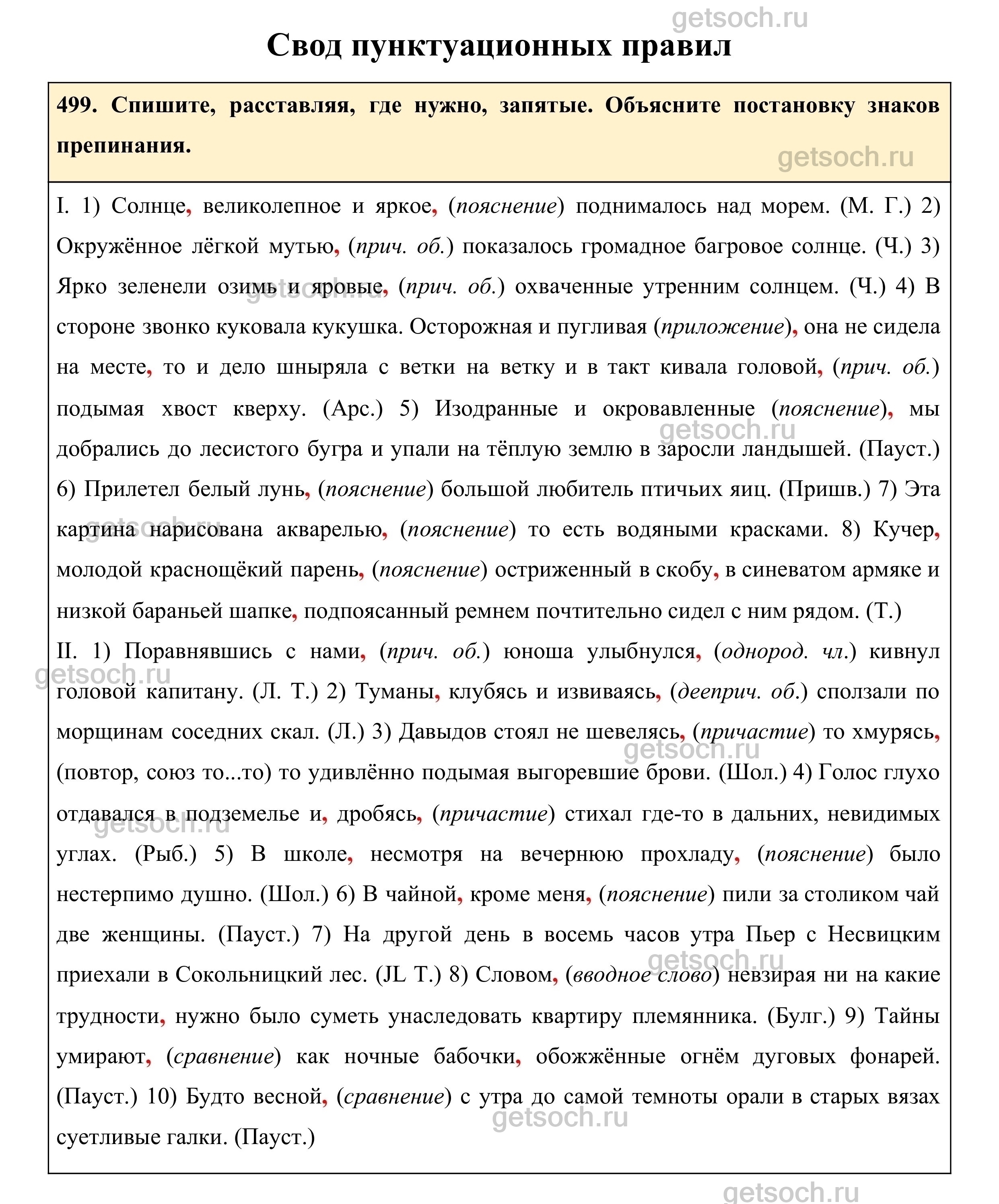 Упражнение 499- ГДЗ по Русскому языку для 10-11 классов Учебник Греков, Крючков, Чешко