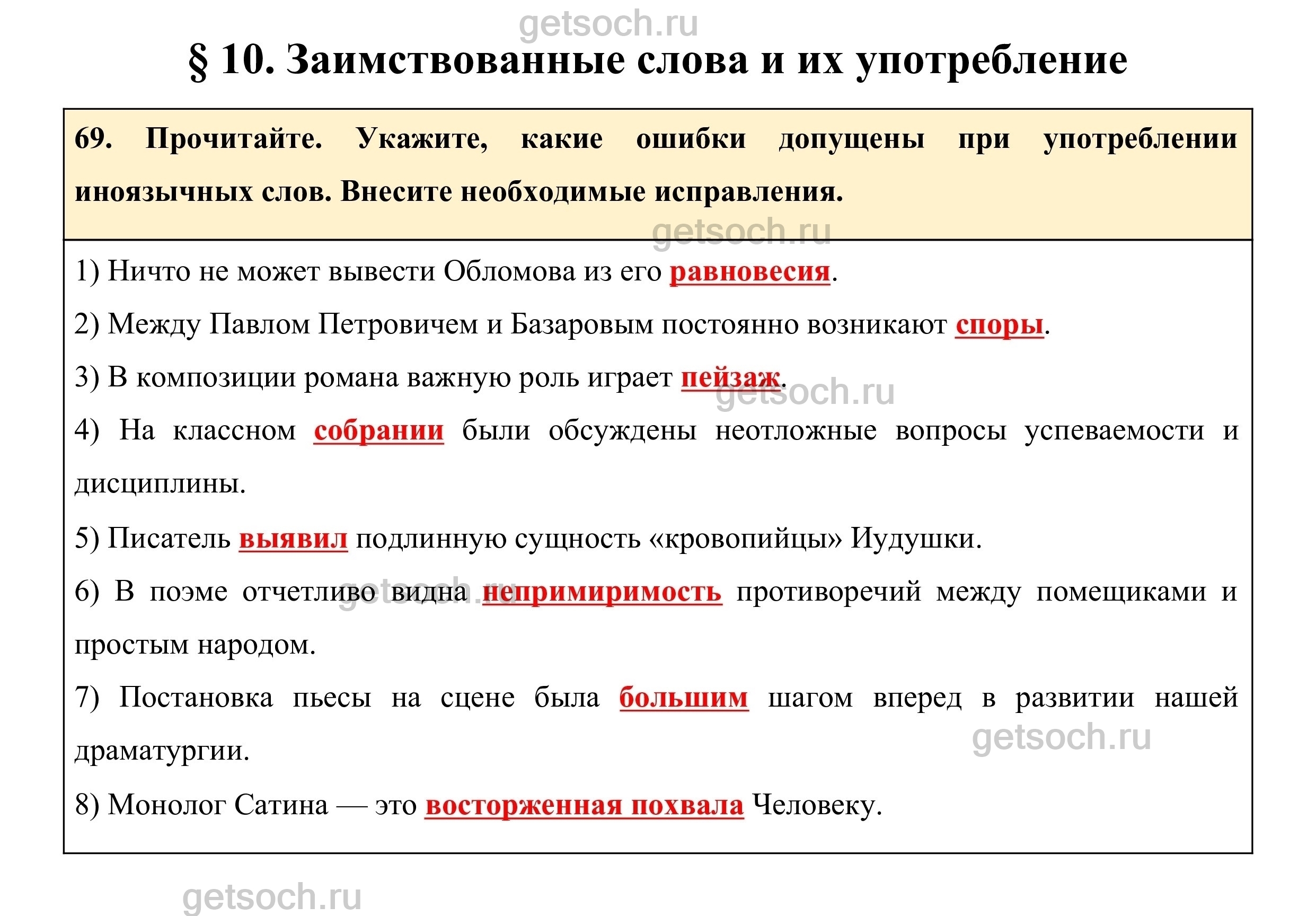 Упражнение 69- ГДЗ по Русскому языку для 10-11 классов Учебник Греков, Крючков, Чешко