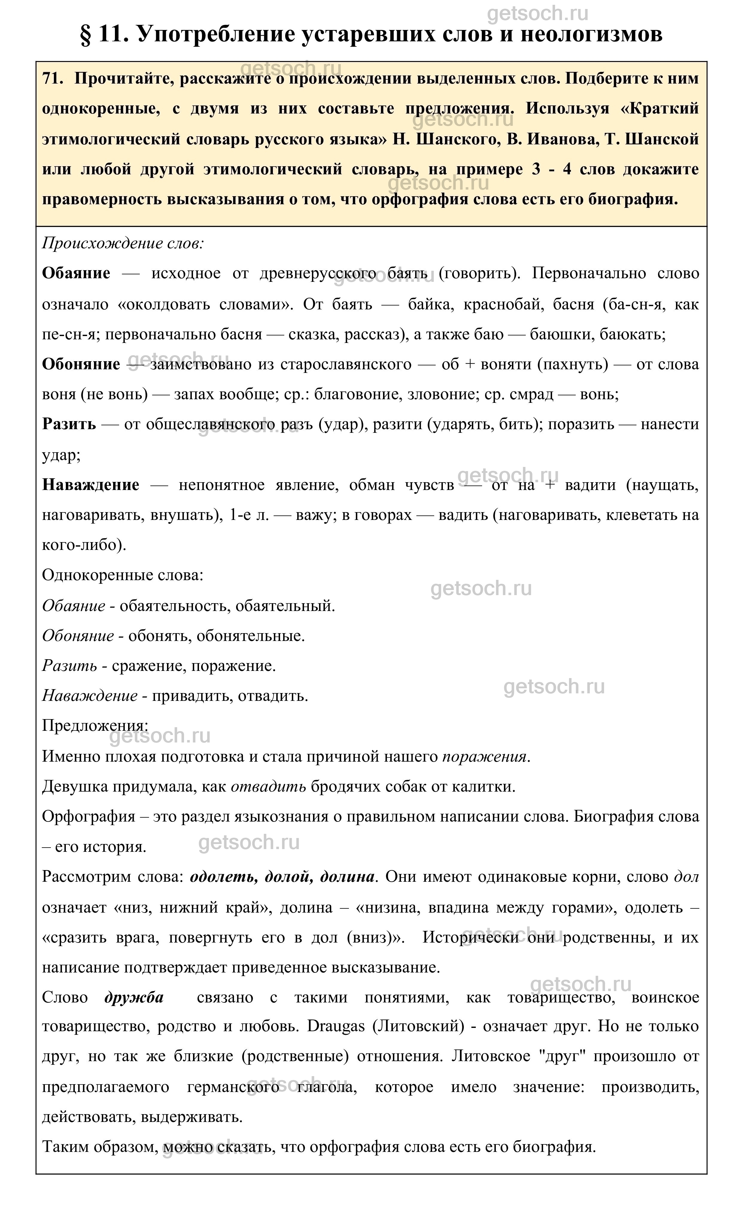 Упражнение 71- ГДЗ по Русскому языку для 10-11 классов Учебник Греков, Крючков, Чешко