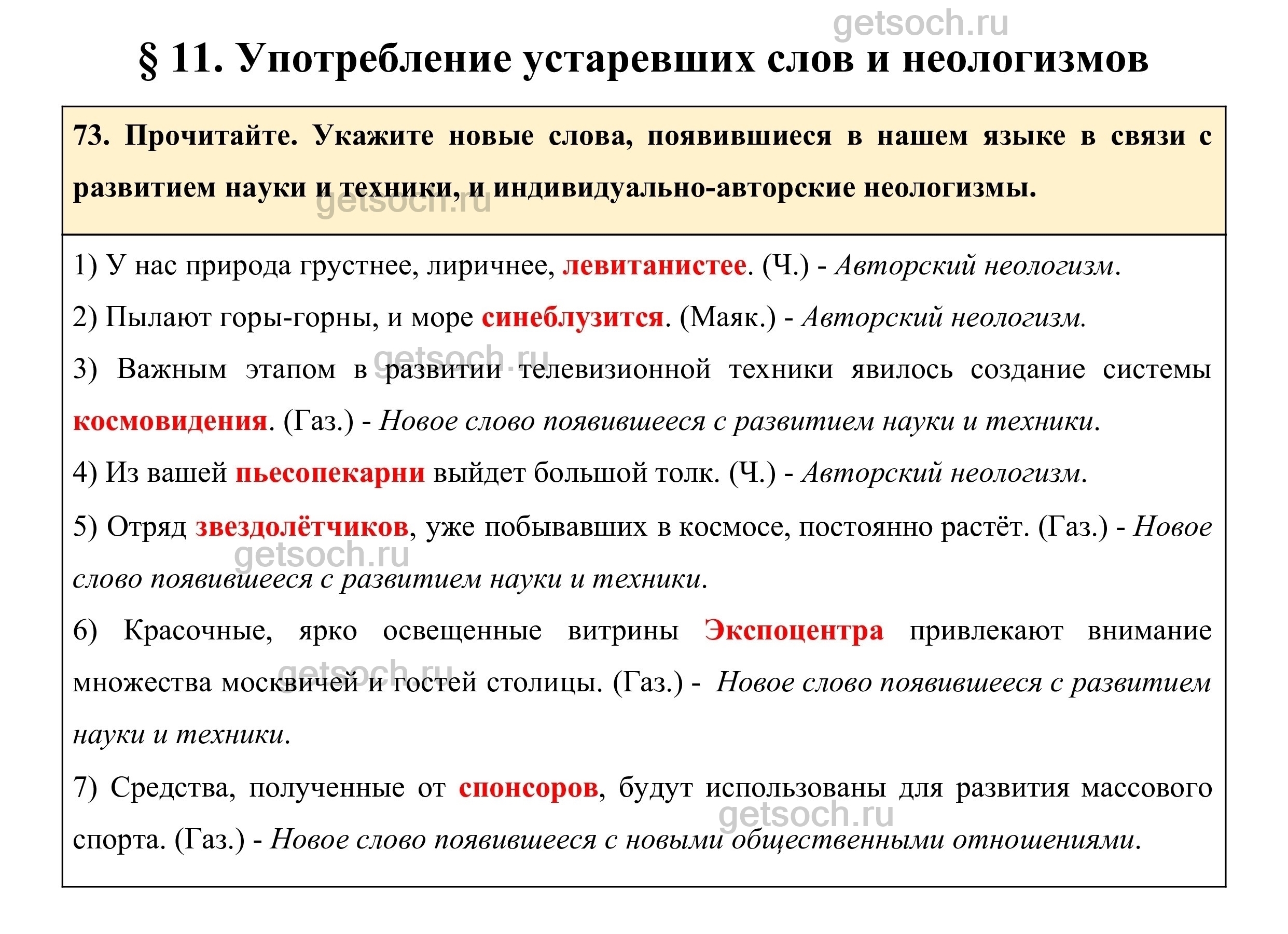 Упражнение 73- ГДЗ по Русскому языку для 10-11 классов Учебник Греков, Крючков, Чешко