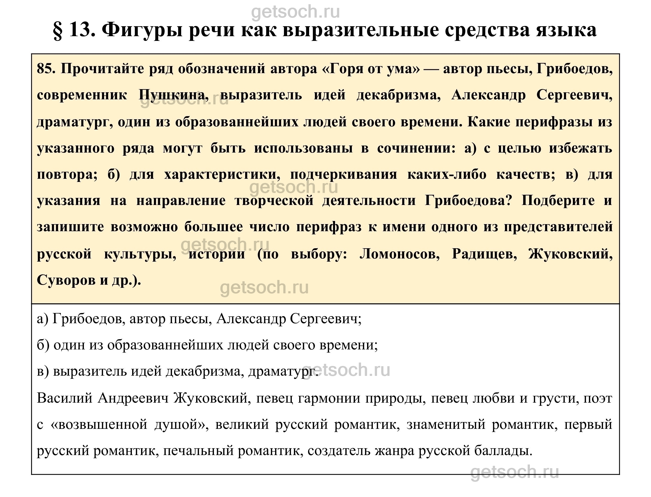 Упражнение 85- ГДЗ по Русскому языку для 10-11 классов Учебник Греков, Крючков, Чешко