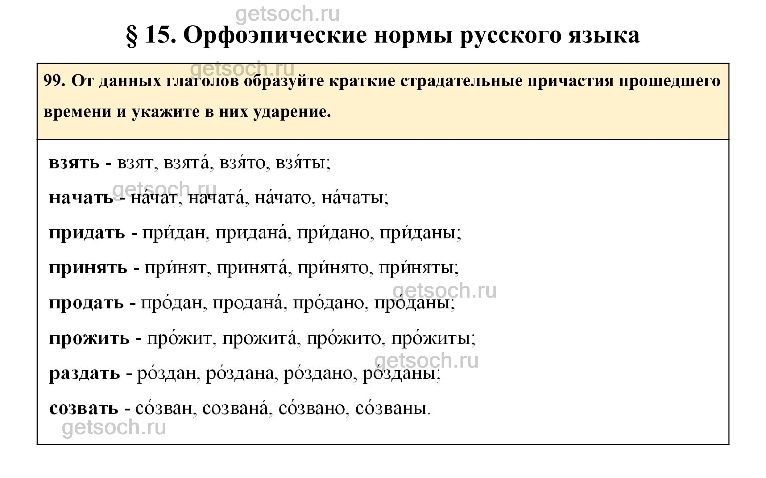Упражнение 99- ГДЗ по Русскому языку для 10-11 классов Учебник Греков, Крючков, Чешко