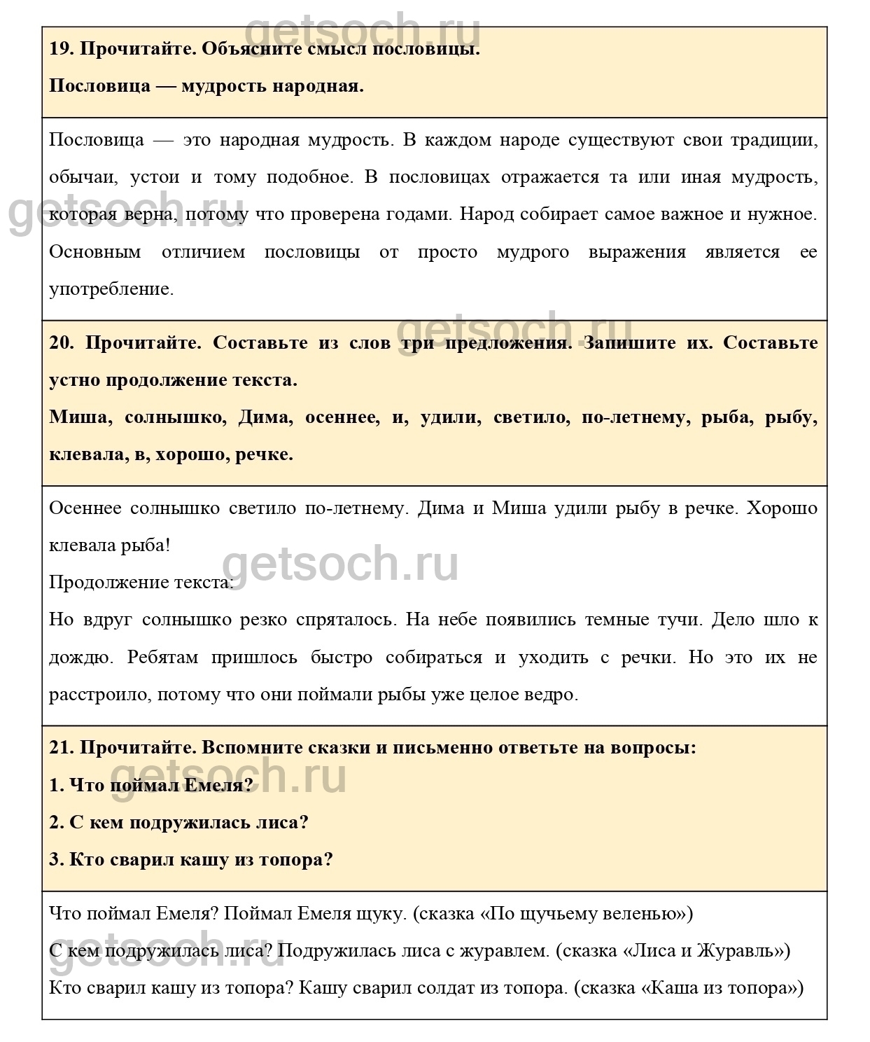 “20. Прочитайте. Составьте из слов три предложения. Запишите их. Составьте устно продолжение текста.