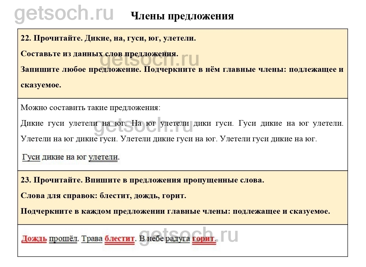 “22. Прочитайте. Дикие, на, гуси, юг, улетели.