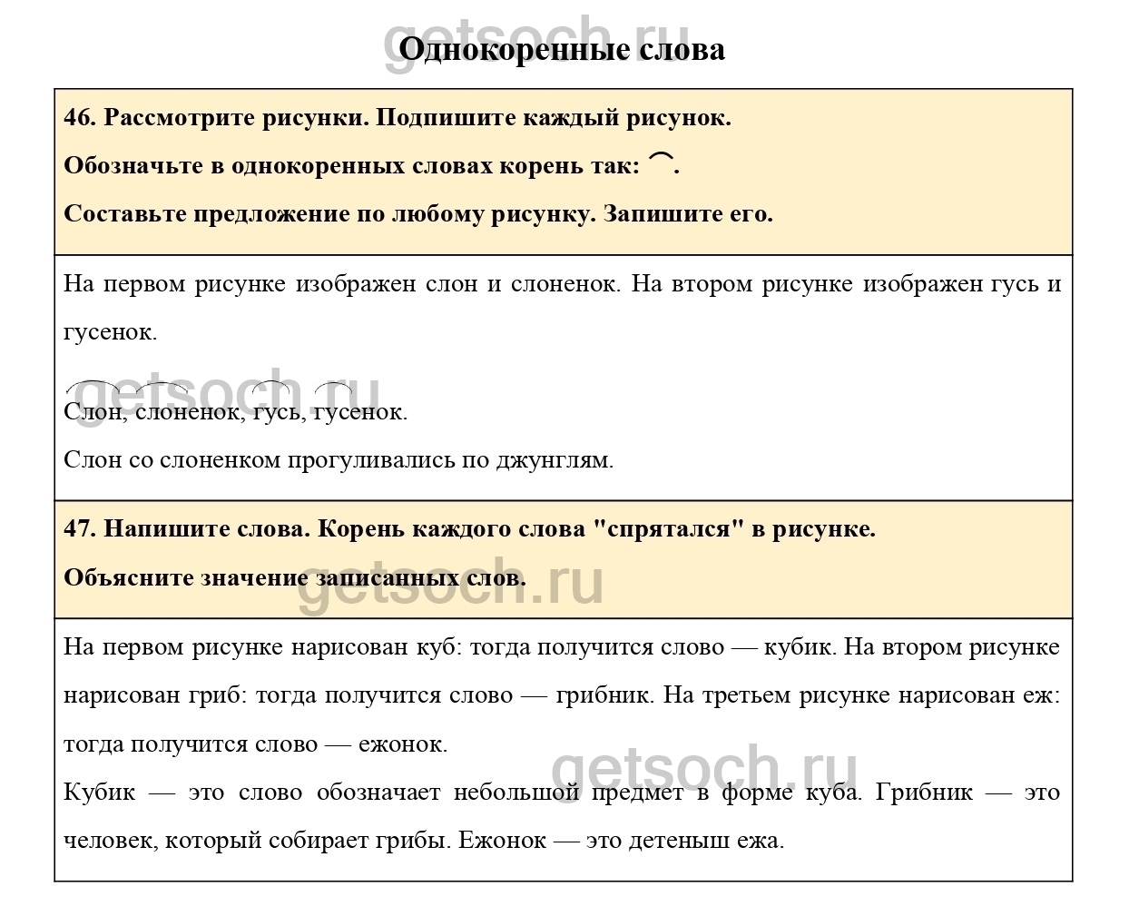 “47. Напишите слова. Корень каждого слова “”спрятался”” в рисунке.