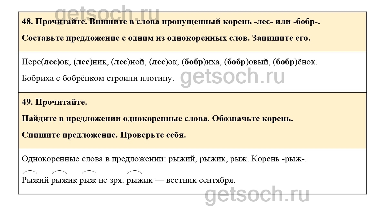“48. Прочитайте. Впишите в слова пропущенный корень -лес- или -бобр-.