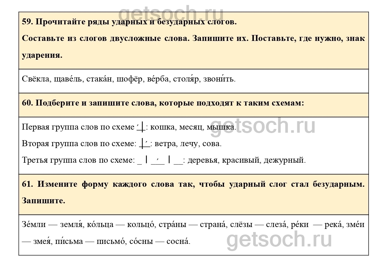 61. Измените форму каждого слова так, чтобы ударный слог стал безударным. Запишите.