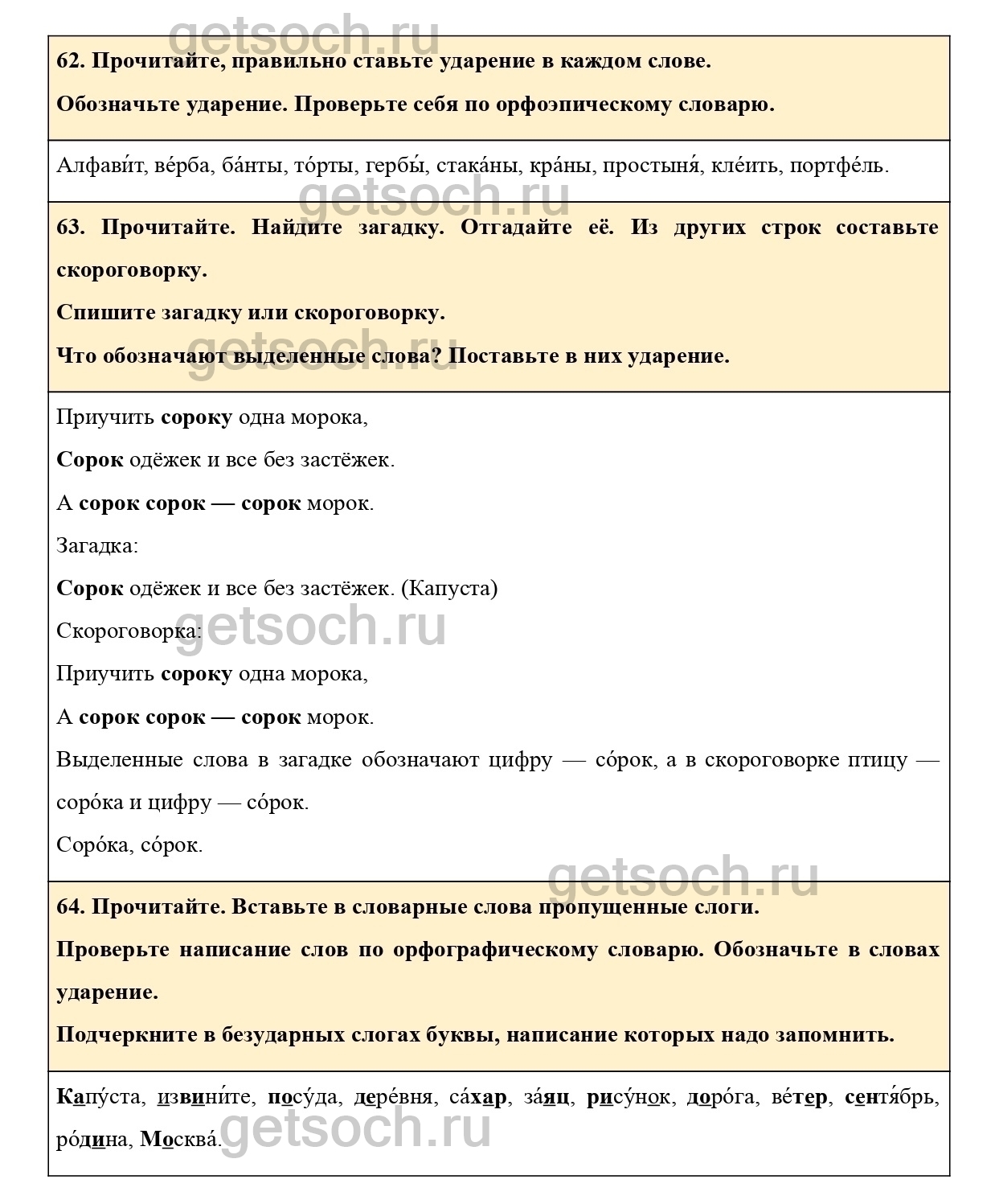 “””62. Прочитайте, правильно ставьте ударение в каждом слове.