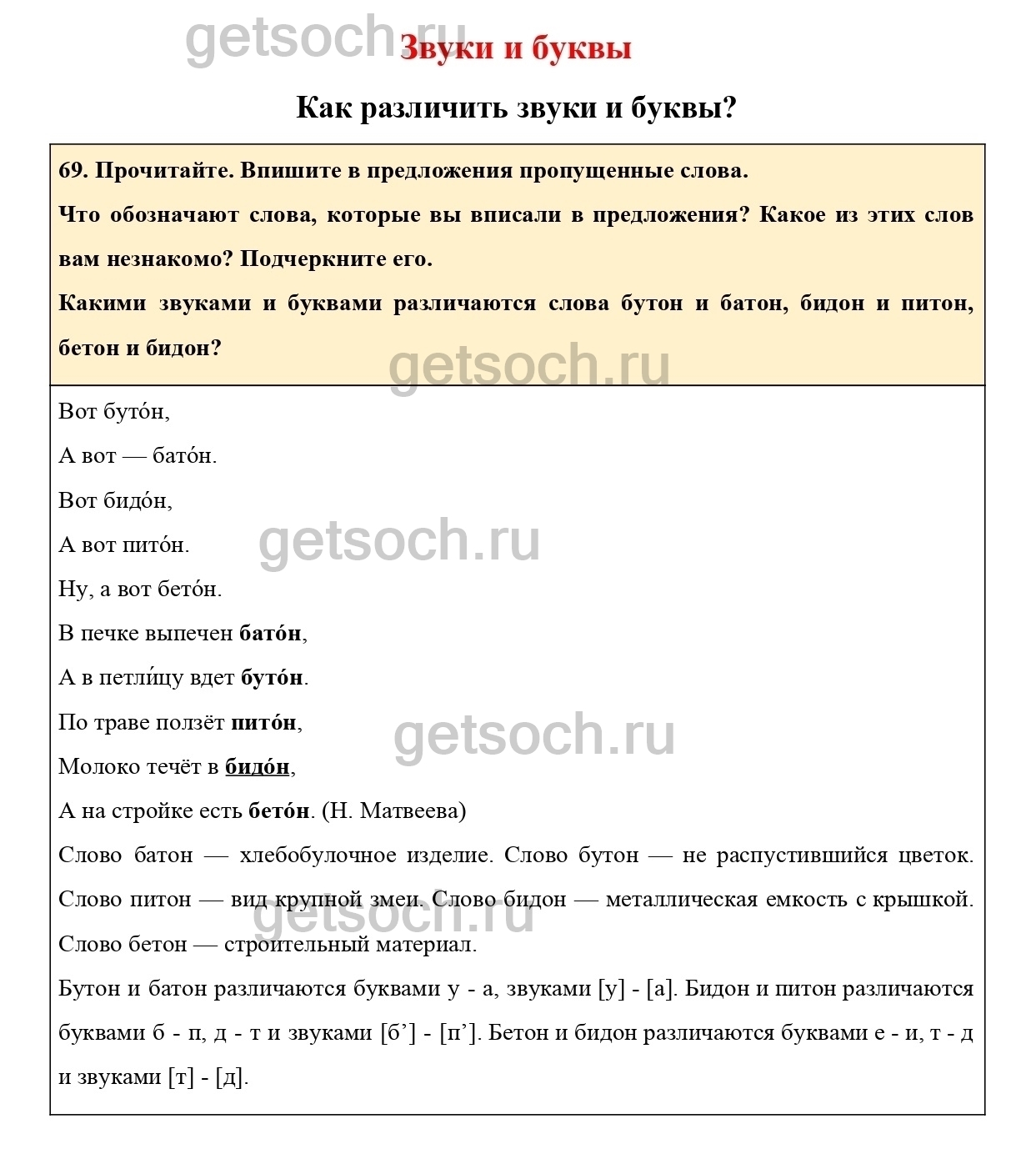 “69. Прочитайте. Впишите в предложения пропущенные слова.