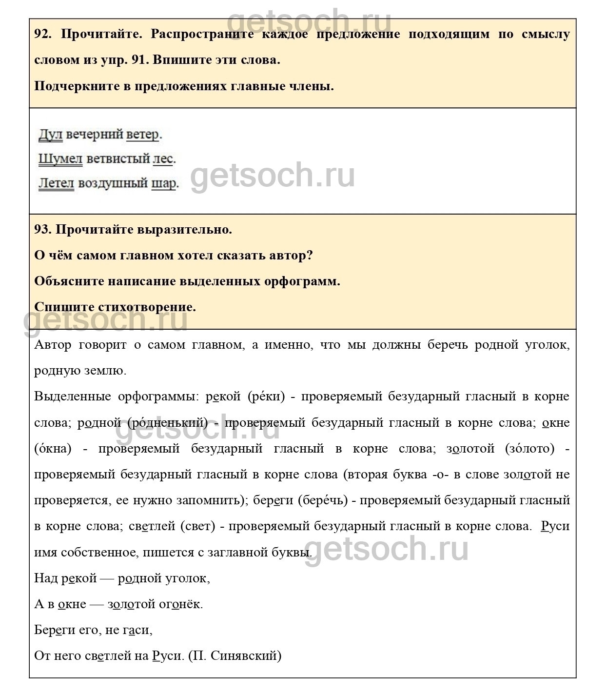 “92. Прочитайте. Распространите каждое предложение подходящим по смыслу словом из упр. 91. Впишите эти слова.