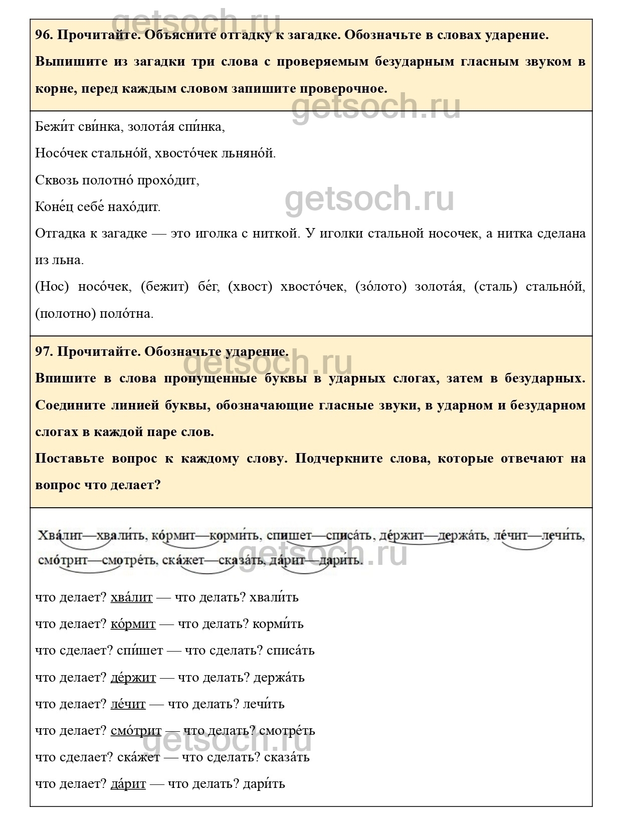 “96. Прочитайте. Объясните отгадку к загадке. Обозначьте в словах ударение.