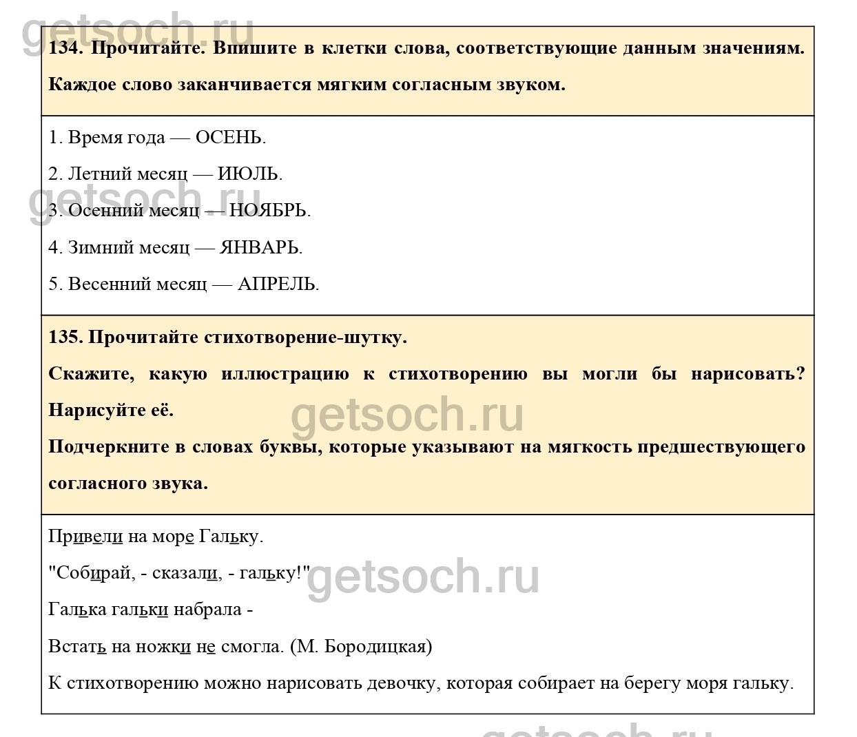 134. Прочитайте. Впишите в клетки слова, соответствующие данным значениям. Каждое слово заканчивается мягким согласным звуком.
