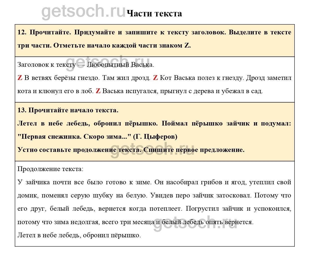 12. Прочитайте. Придумайте и запишите к тексту заголовок. Выделите в тексте три части. Отметьте начало каждой части знаком Z.