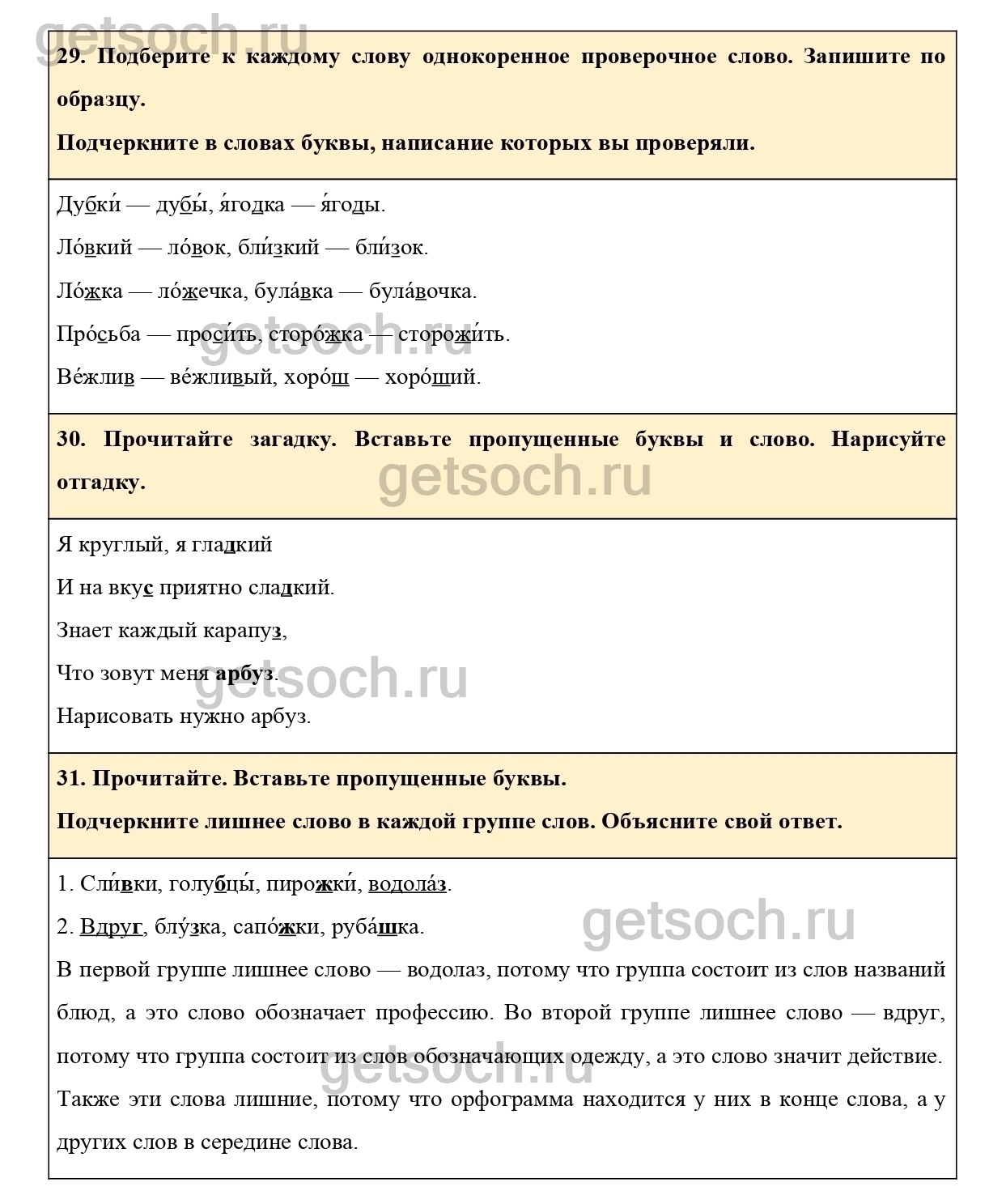 “29. Подберите к каждому слову однокоренное проверочное слово. Запишите по образцу.