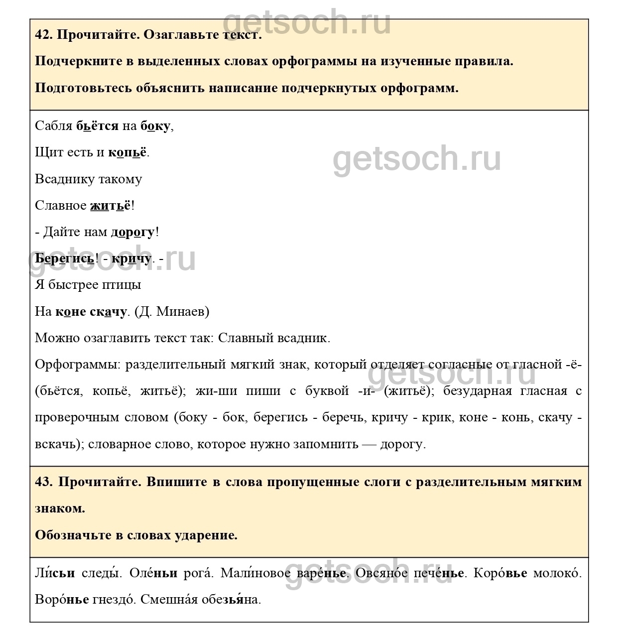 “43. Прочитайте. Впишите в слова пропущенные слоги с разделительным мягким знаком.