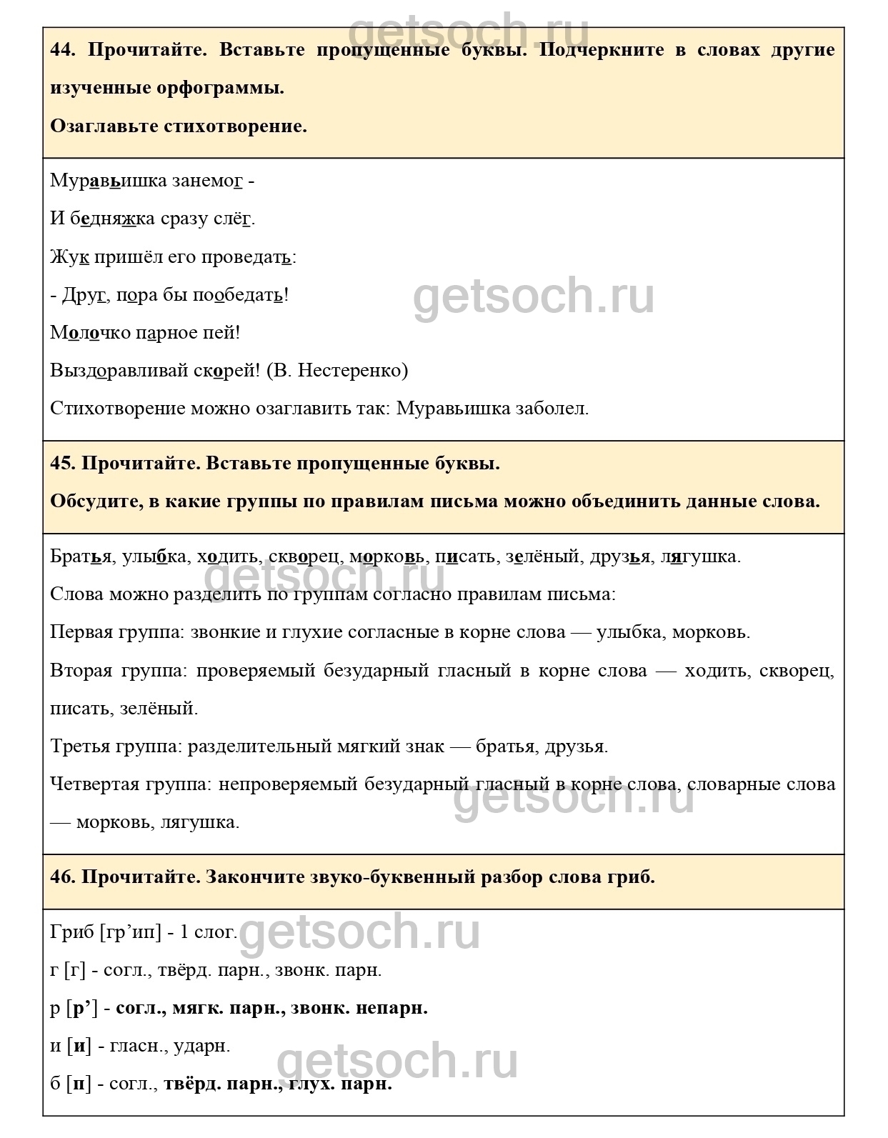 “45. Прочитайте. Вставьте пропущенные буквы.
