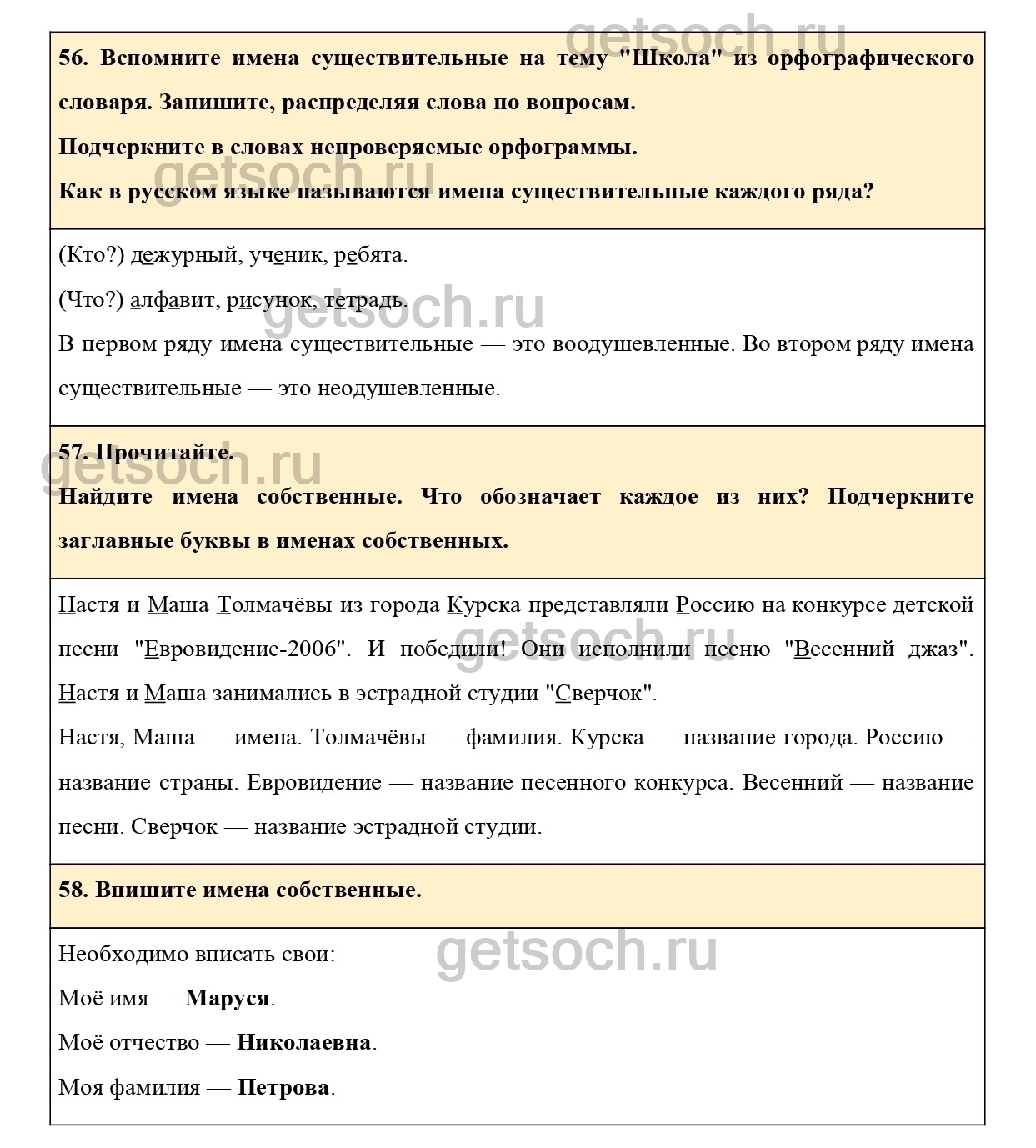 “56. Вспомните имена существительные на тему “”Школа”” из орфографического словаря. Запишите, распределяя слова по вопросам.