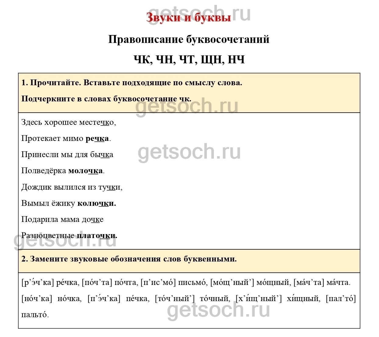 Подчеркните в словах буквосочетание чк.”