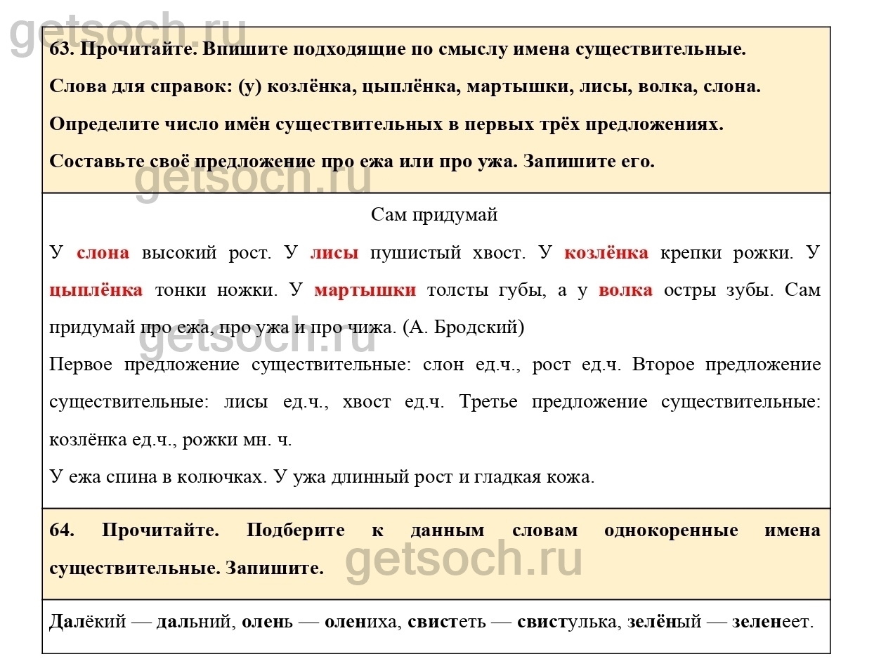 “63. Прочитайте. Впишите подходящие по смыслу имена существительные.