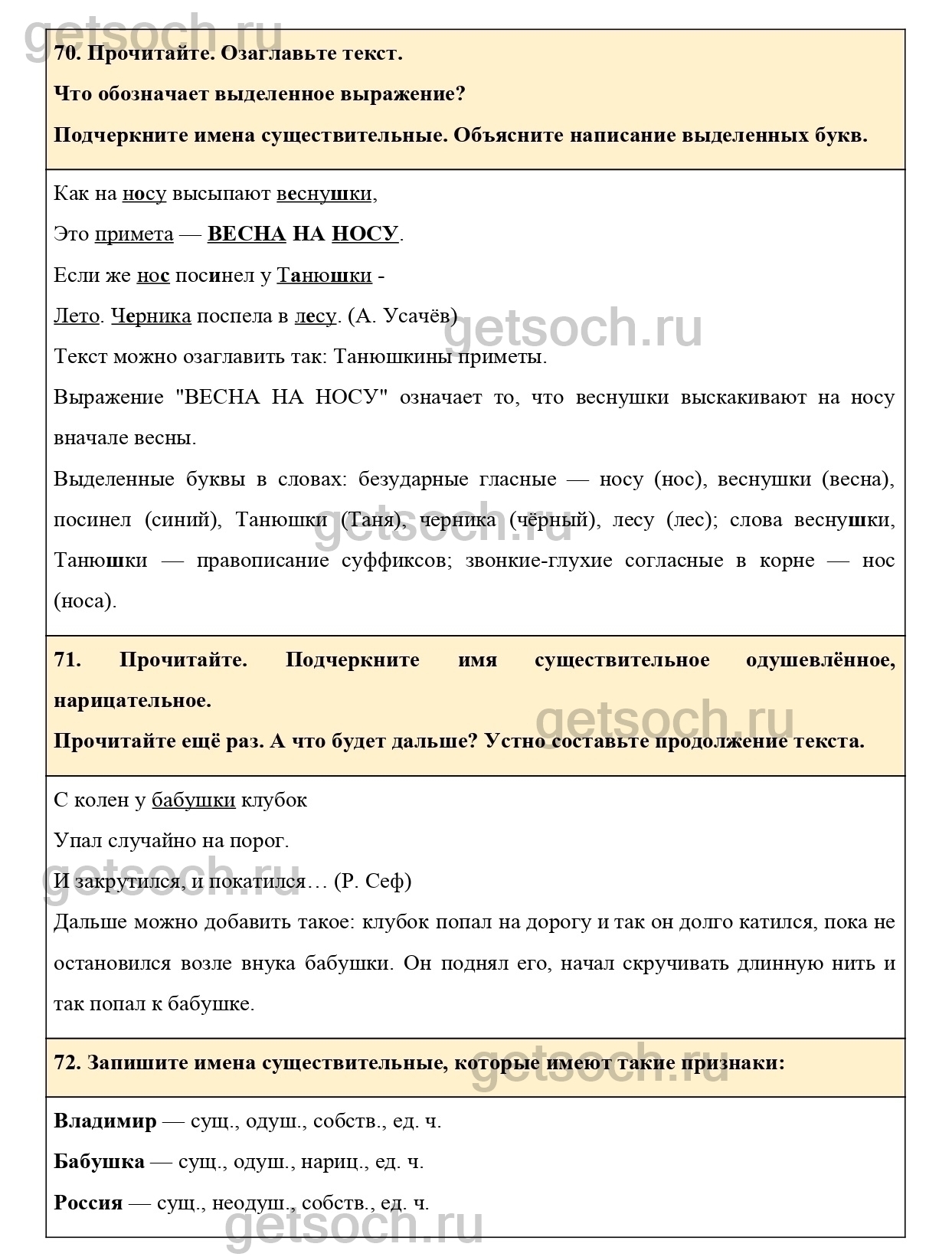 “71. Прочитайте. Подчеркните имя существительное одушевлённое, нарицательное.
