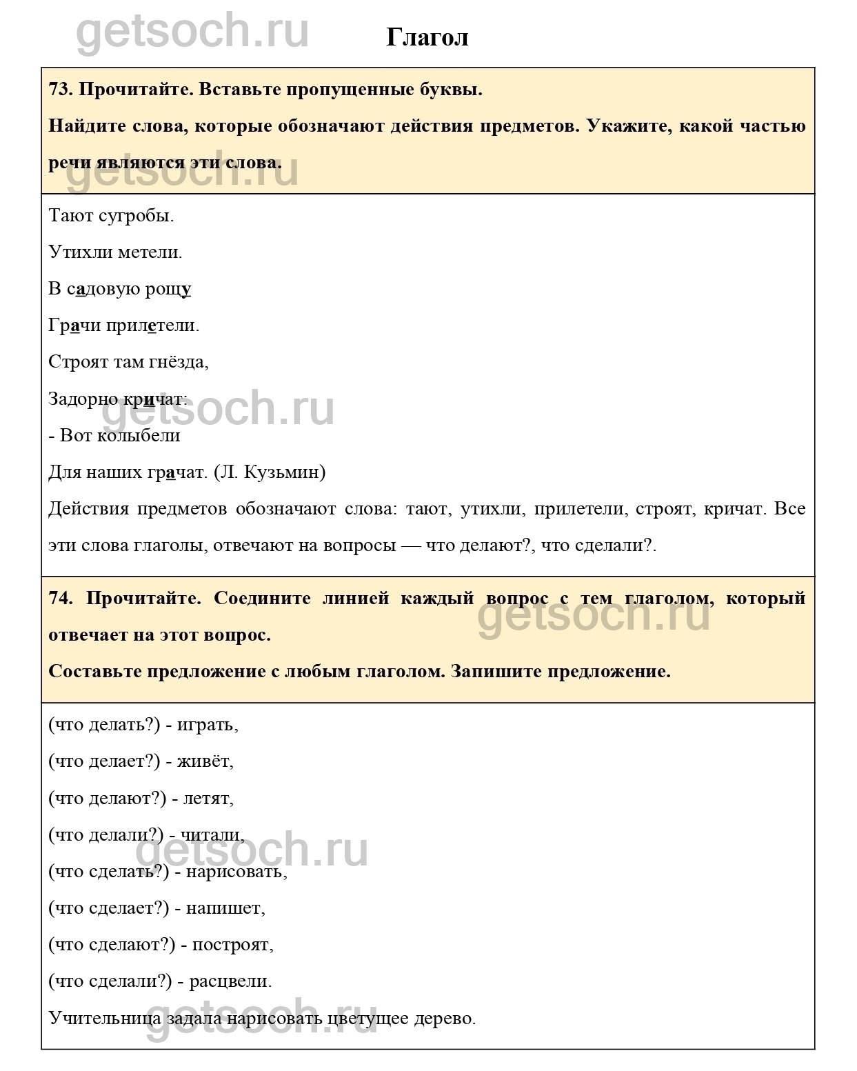“74. Прочитайте. Соедините линией каждый вопрос с тем глаголом, который отвечает на этот вопрос.