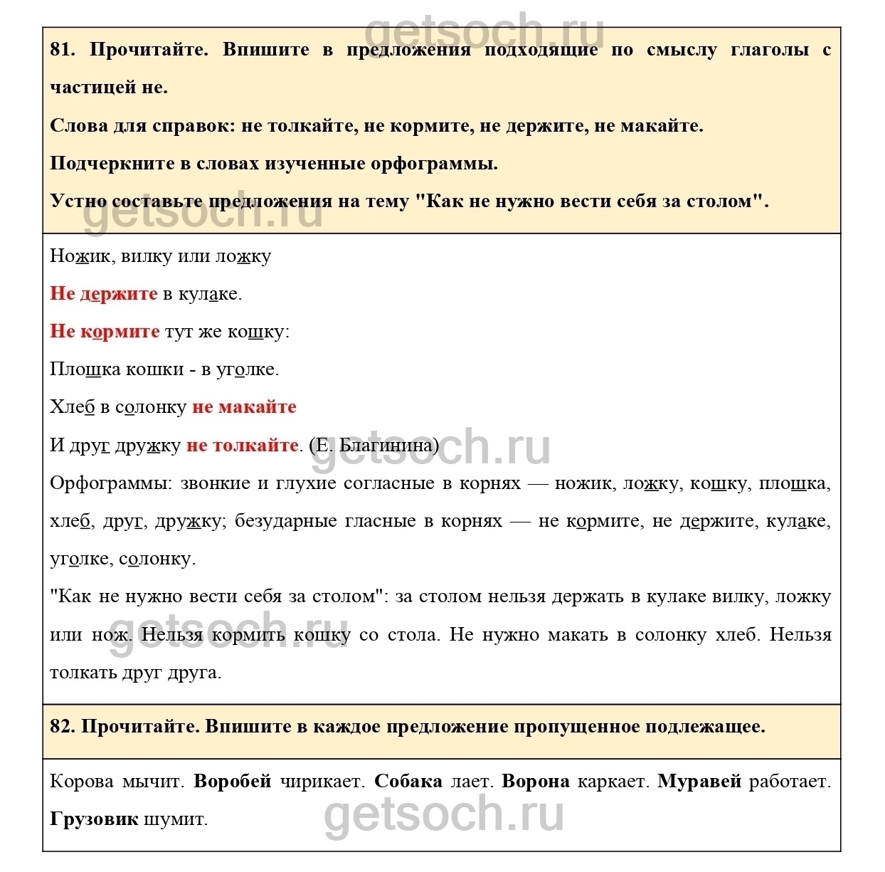 “81. Прочитайте. Впишите в предложения подходящие по смыслу глаголы с частицей не.