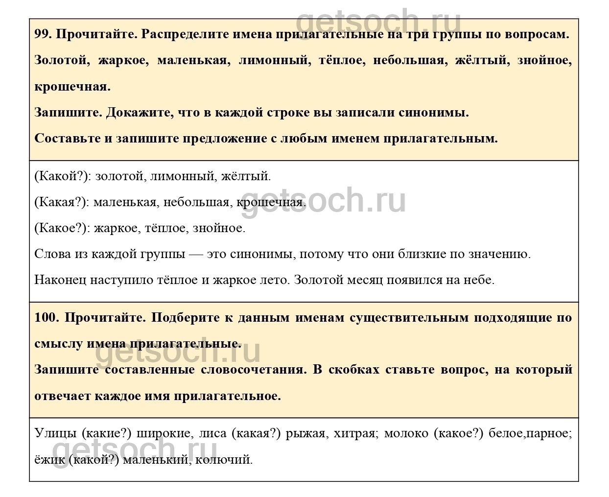 “99. Прочитайте. Распределите имена прилагательные на три группы по вопросам.