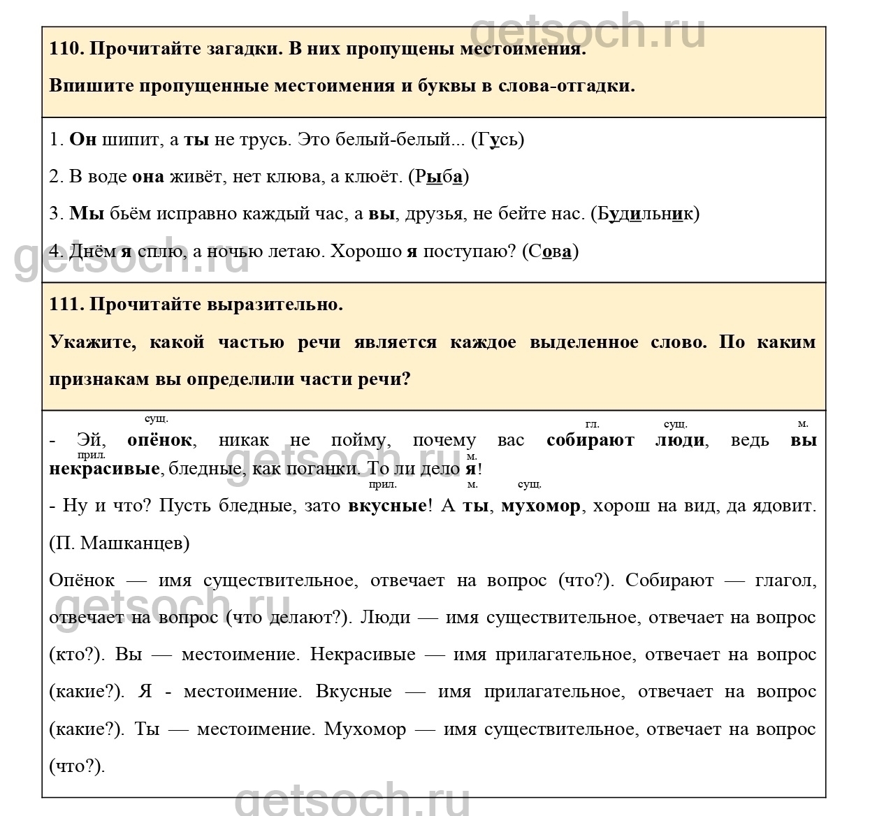“110. Прочитайте загадки. В них пропущены местоимения.