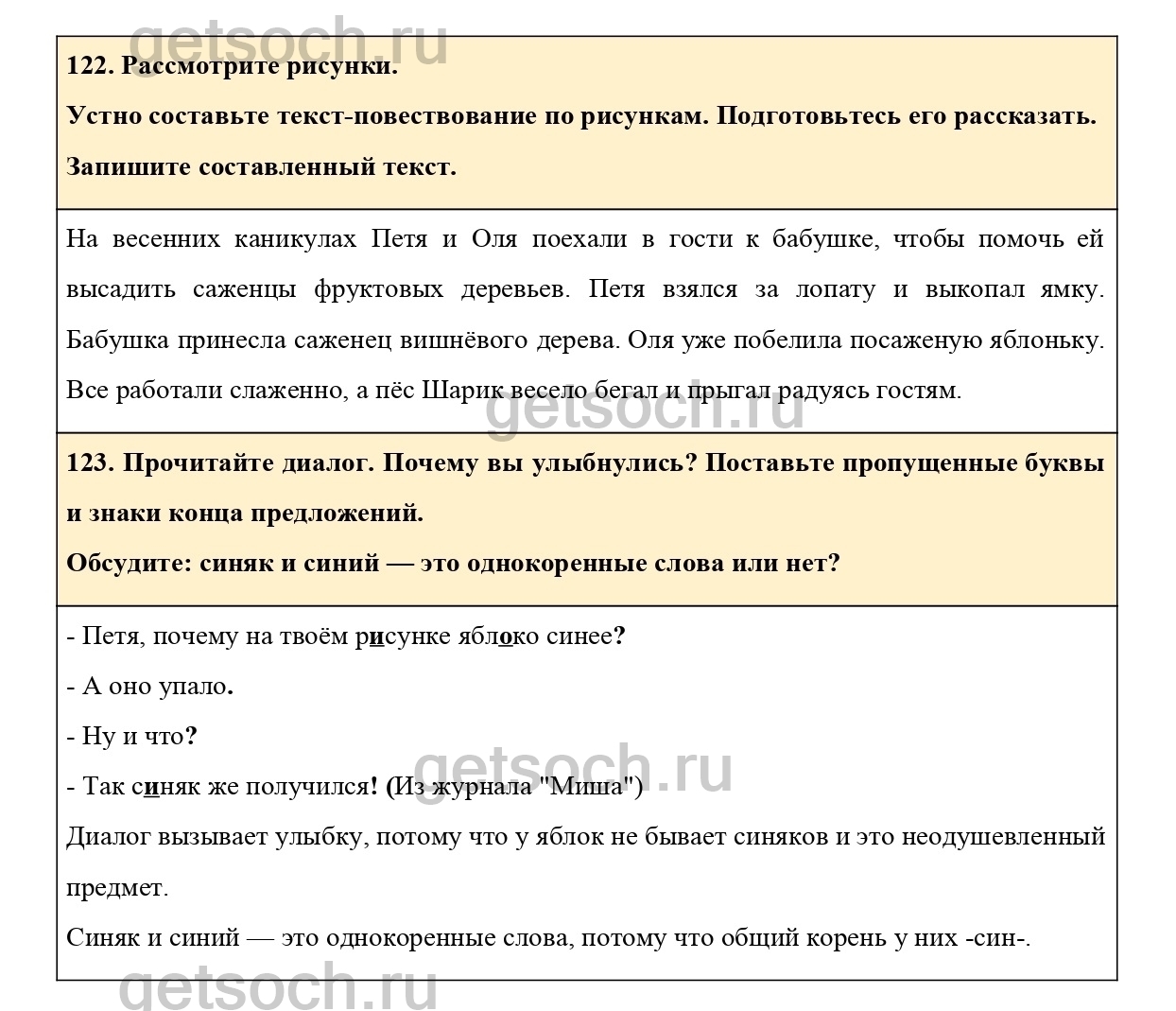 “123. Прочитайте диалог. Почему вы улыбнулись? Поставьте пропущенные буквы и знаки конца предложений.