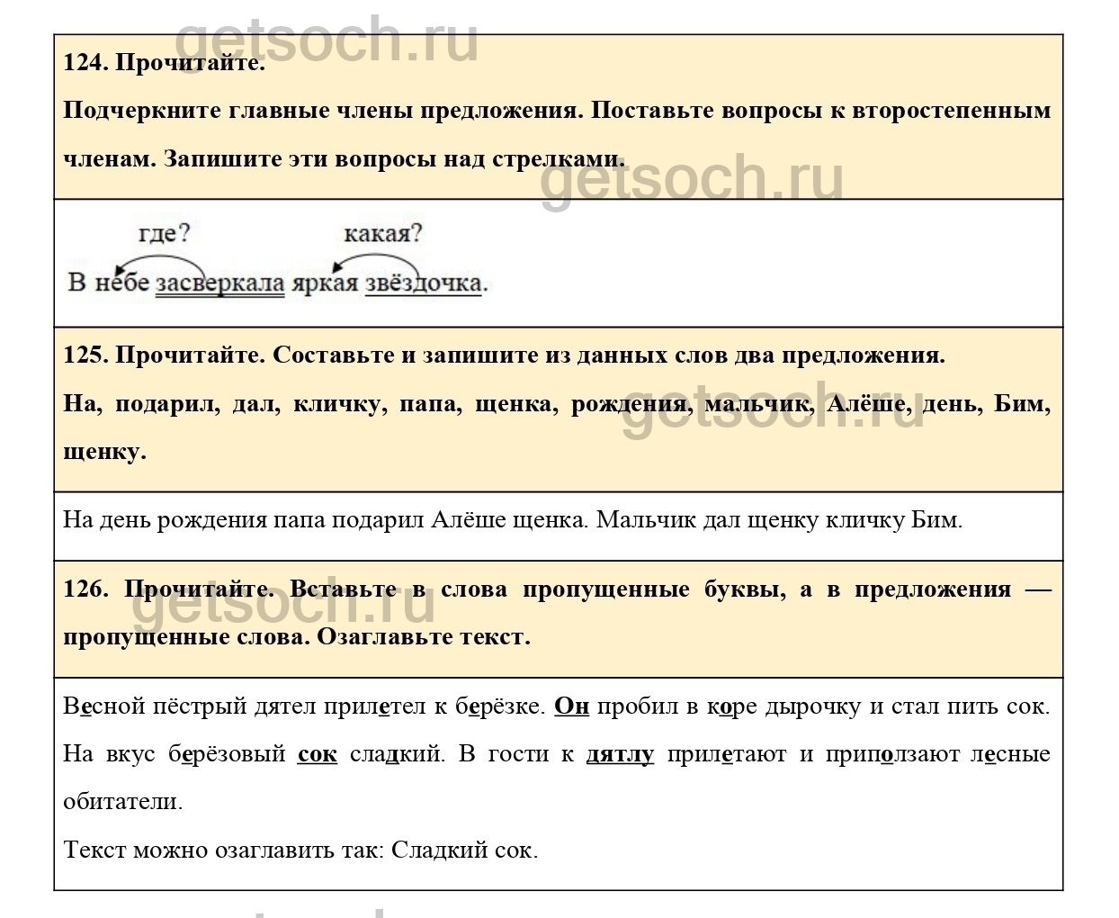 “125. Прочитайте. Составьте и запишите из данных слов два предложения.
