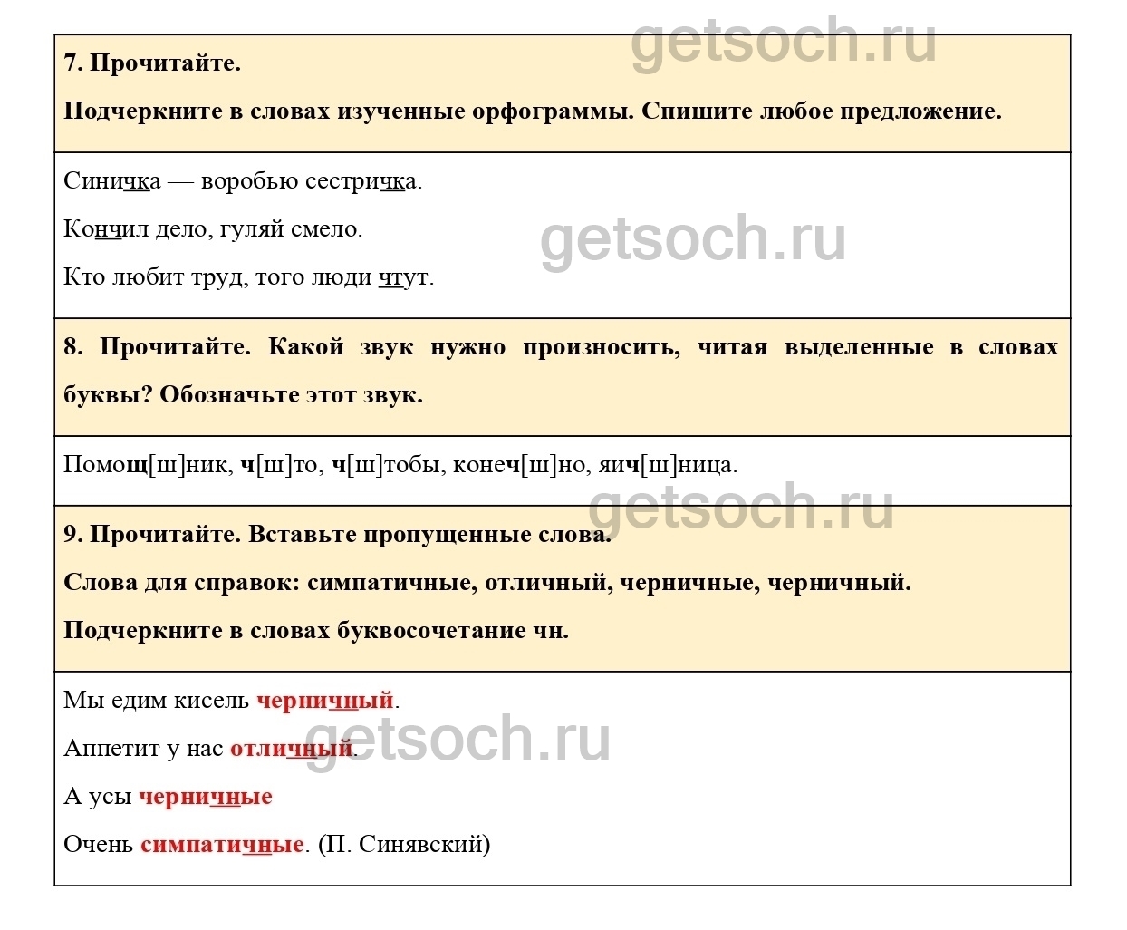 8. Прочитайте. Какой звук нужно произносить, читая выделенные в словах буквы? Обозначьте этот звук.