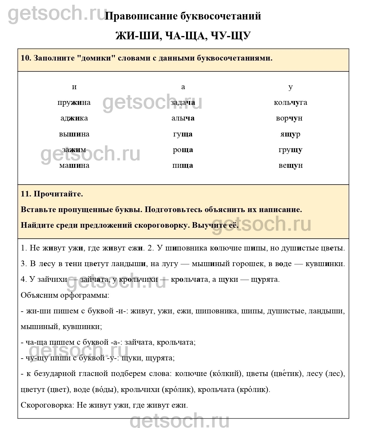 10. Заполните “домики” словами с данными буквосочетаниями.
