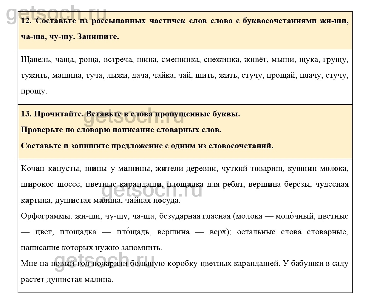 12. Составьте из рассыпанных частичек слов слова с буквосочетаниями жи-ши, ча-ща, чу-щу. Запишите.