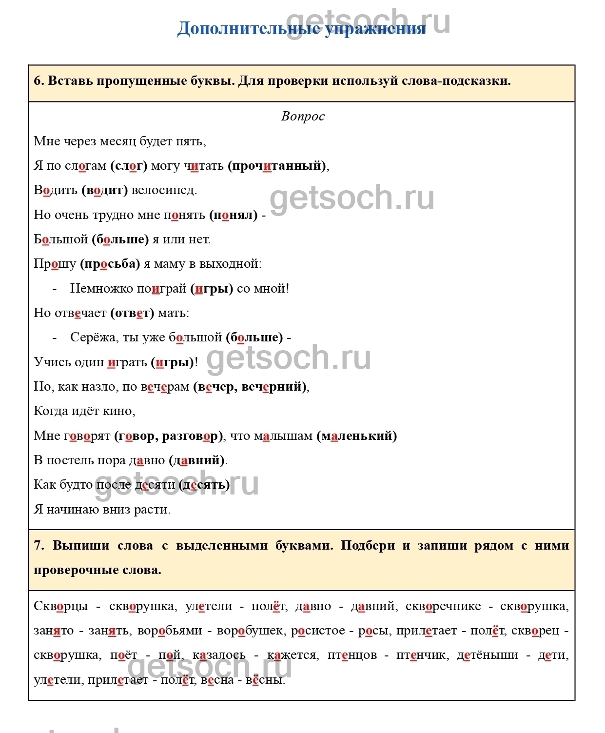 Рассмотрим ответы на задания рабочей тетради по русскому языку для 2 класса Кузнецова Страница 1036. Вставь пропущенные буквы. Для проверки используй слова-подсказки.