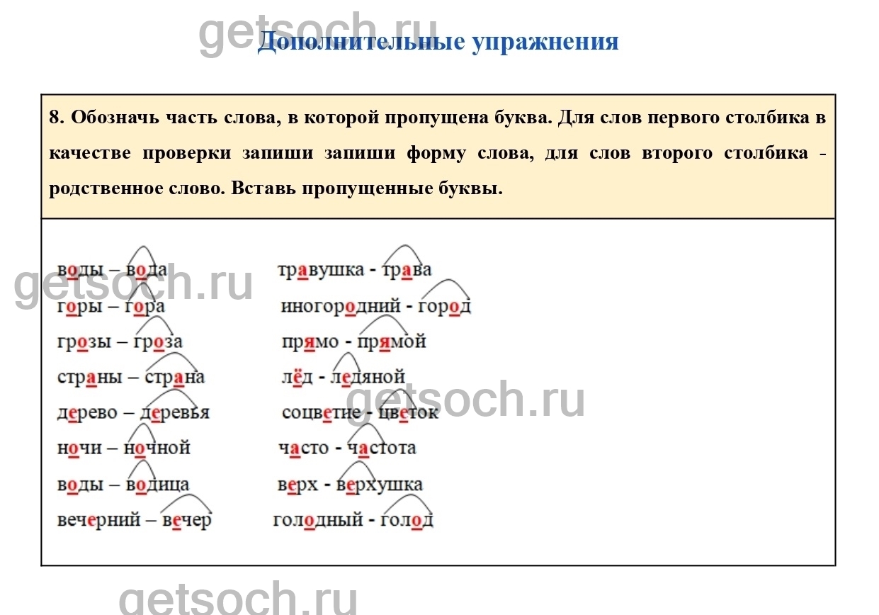 Рассмотрим ответы на задания рабочей тетради по русскому языку для 2 класса Кузнецова Страница 1048. Обозначь часть слова, в которой пропущена буква. Для слов первого столбика в качестве проверки запиши запиши форму слова, для слов второго столбика – родственное слово. Вставь пропущенные буквы.
