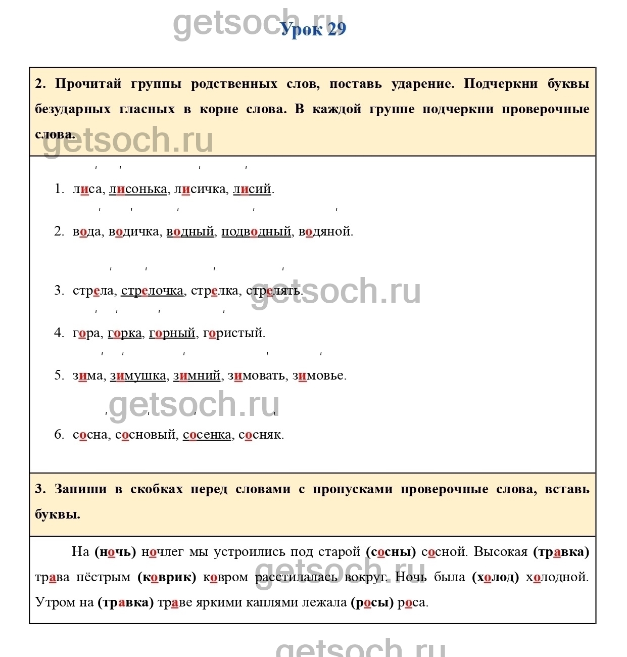 Рассмотрим ответы на задания рабочей тетради по русскому языку для 2 класса Кузнецова Страница 122. Прочитай группы родственных слов, поставь ударение. Подчеркни буквы безударных гласных в корне слова. В каждой группе подчеркни проверочные слова.