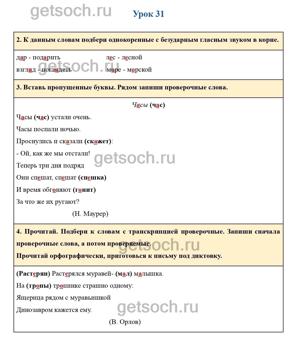 “4. Прочитай. Подбери к словам с транскрипцией проверочные. Запиши сначала проверочные слова, а потом проверяемые.