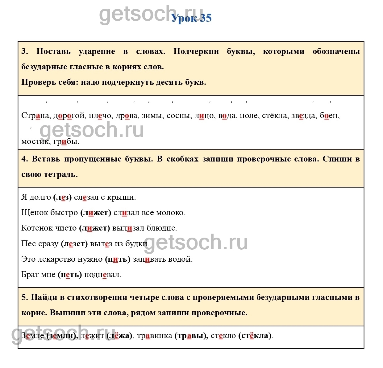 Рассмотрим ответы на задания рабочей тетради по русскому языку для 2 класса Кузнецова Страница 26″3. Поставь ударение в словах. Подчеркни буквы, которыми обозначены безударные гласные в корнях слов.