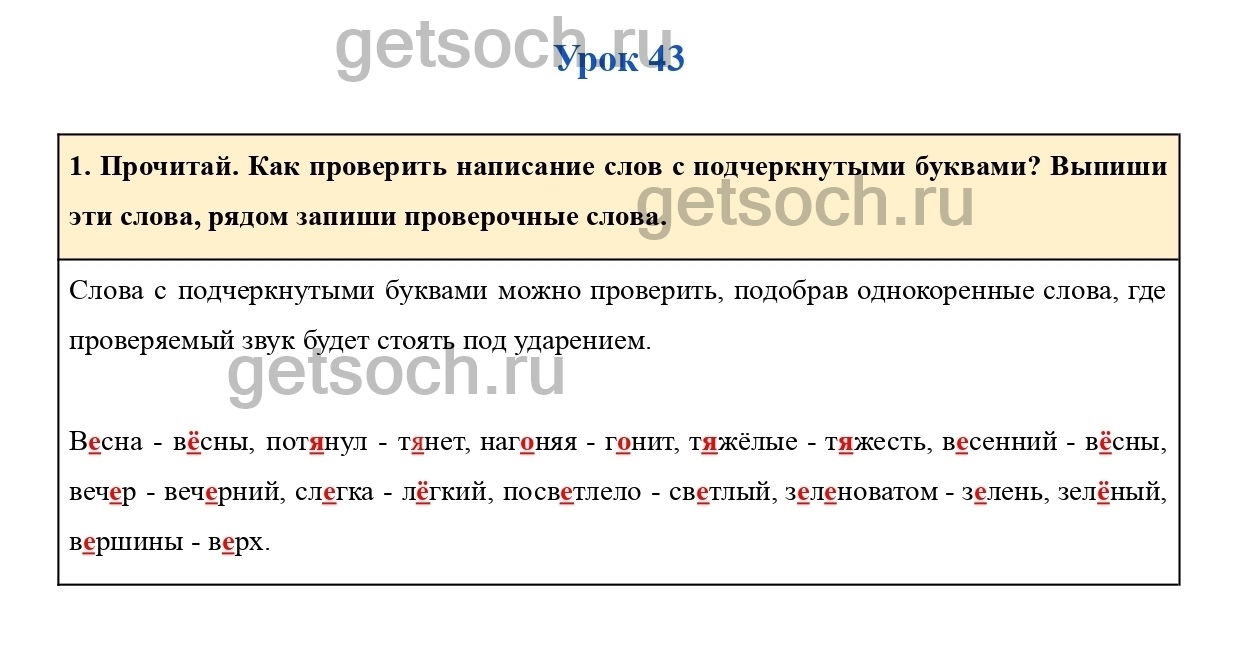 Рассмотрим ответы на задания рабочей тетради по русскому языку для 2 класса Кузнецова Страница 451. Прочитай. Как проверить написание слов с подчеркнутыми буквами? Выпиши эти слова, рядом запиши проверочные слова.