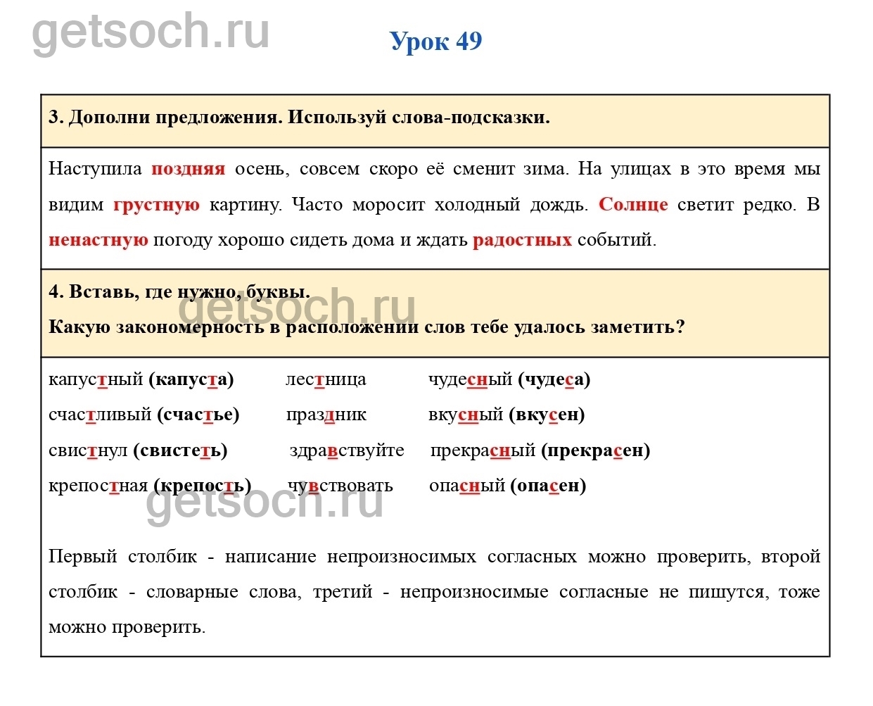 Рассмотрим ответы на задания рабочей тетради по русскому языку для 2 класса Кузнецова Страница 623. Дополни предложения. Используй слова-подсказки.