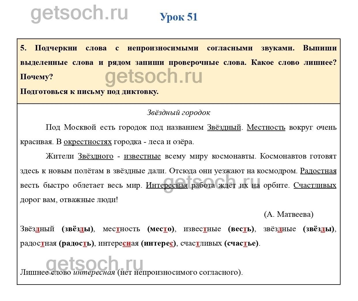 Рассмотрим ответы на задания рабочей тетради по русскому языку для 2 класса Кузнецова Страница 675. Подчеркни слова с непроизносимыми согласными звуками. Выпиши выделенные слова и рядом запиши проверочные слова. Какое слово лишнее? Почему?