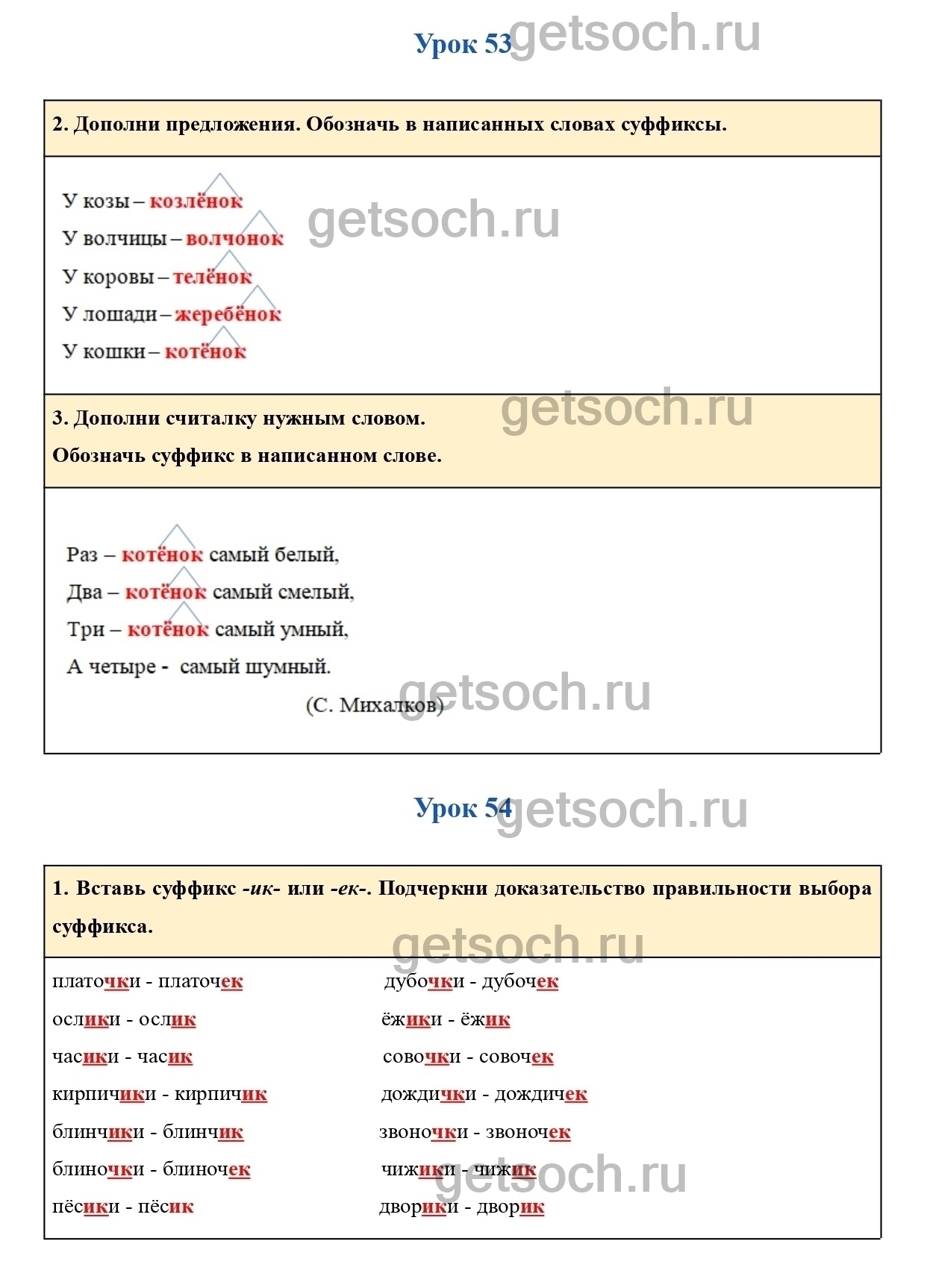 Рассмотрим ответы на задания рабочей тетради по русскому языку для 2 класса Кузнецова Страница 692. Дополни предложения. Обозначь в написанных словах суффиксы.
