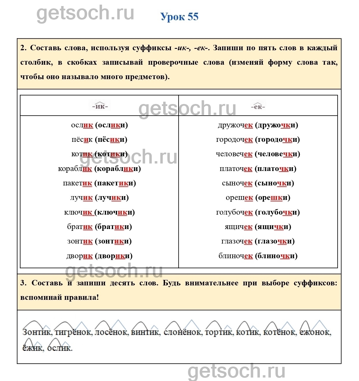 3. Составь и запиши десять слов. Будь внимательнее при выборе суффиксов: вспоминай правила!