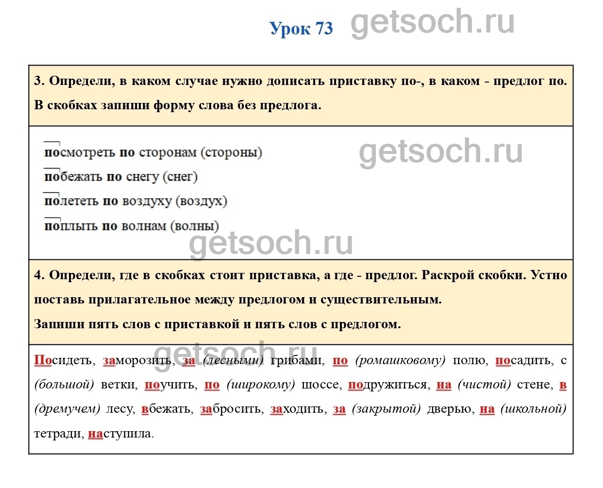 Рассмотрим ответы на задания рабочей тетради по русскому языку для 2 класса Кузнецова Страница 913. Определи, в каком случае нужно дописать приставку по-, в каком – предлог по. В скобках запиши форму слова без предлога.