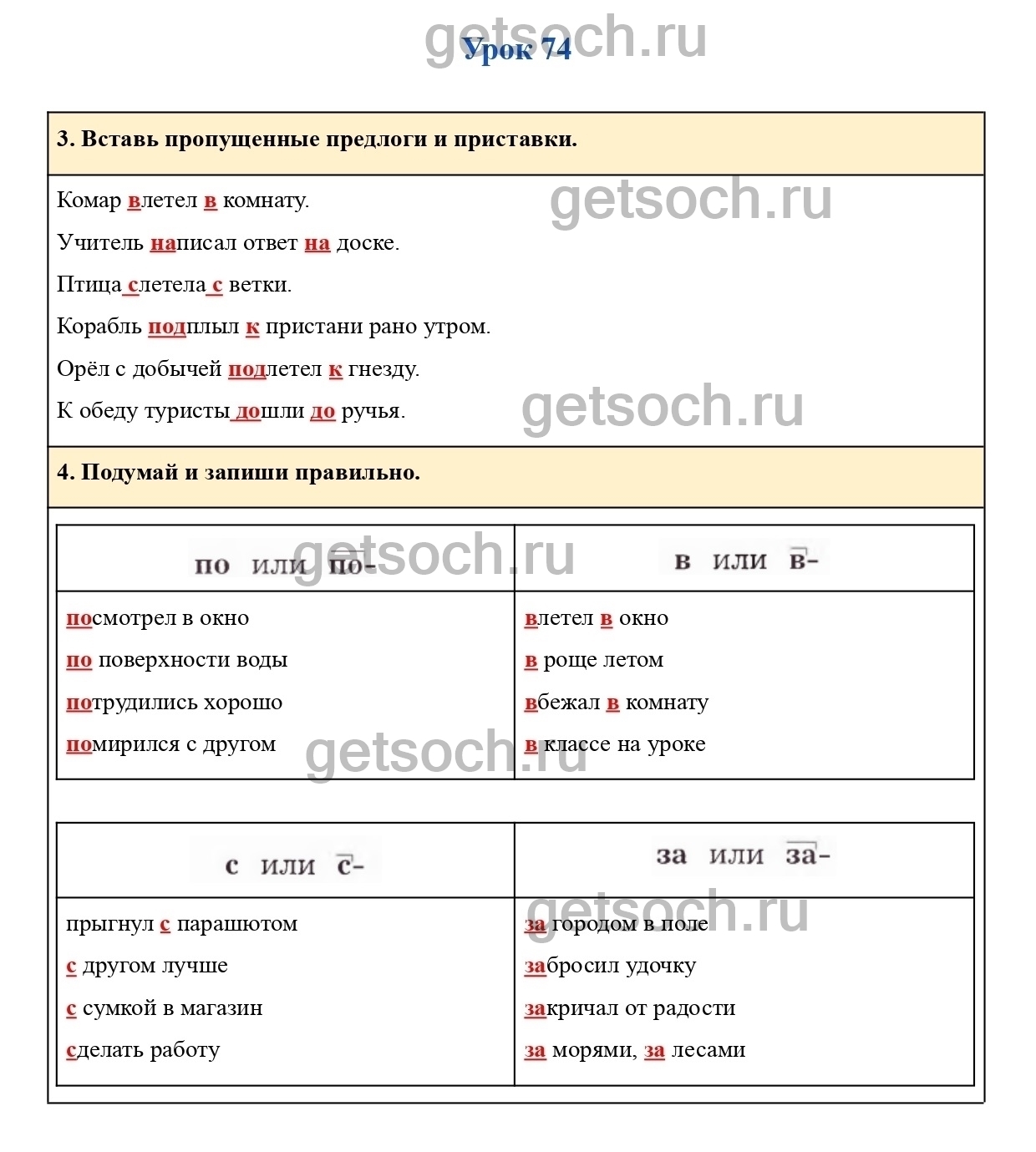 Рассмотрим ответы на задания рабочей тетради по русскому языку для 2 класса Кузнецова Страница 933. Вставь пропущенные предлоги и приставки.