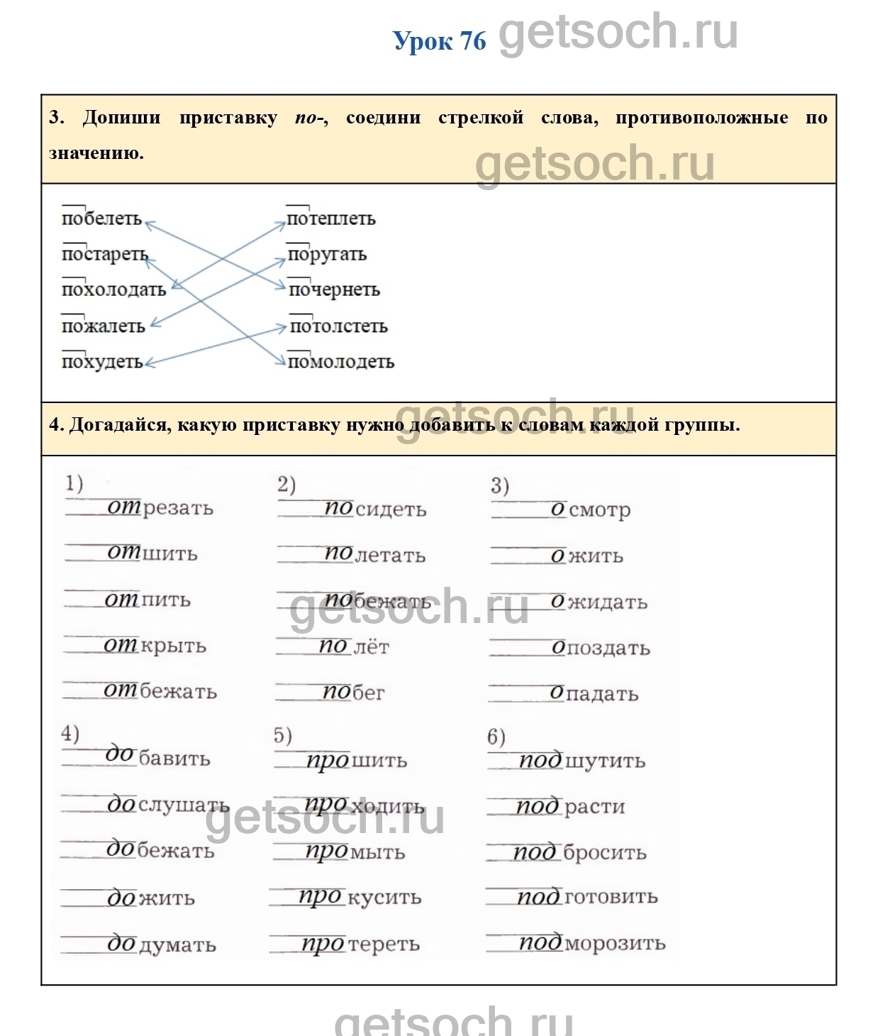 4. Догадайся, какую приставку нужно добавить к словам каждой группы.