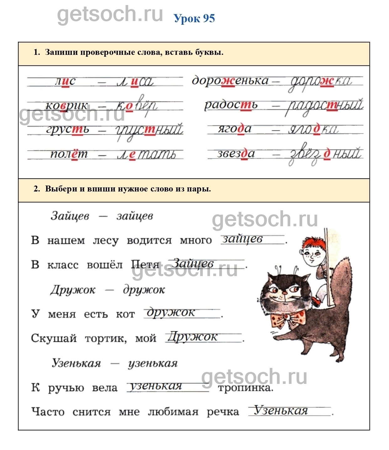 Рассмотрим ответы на задания рабочей тетради по русскому языку для 2 класса Кузнецова Страница 10Запиши проверочные слова, вставь буквы.