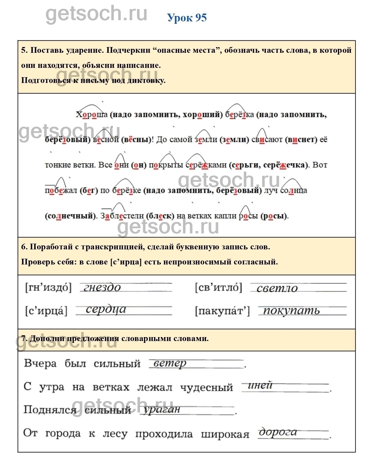 Рассмотрим ответы на задания рабочей тетради по русскому языку для 2 класса Кузнецова Страница 12″5. Поставь ударение. Подчеркни “опасные места”, обозначь часть слова, в которой они находятся, объясни написание.