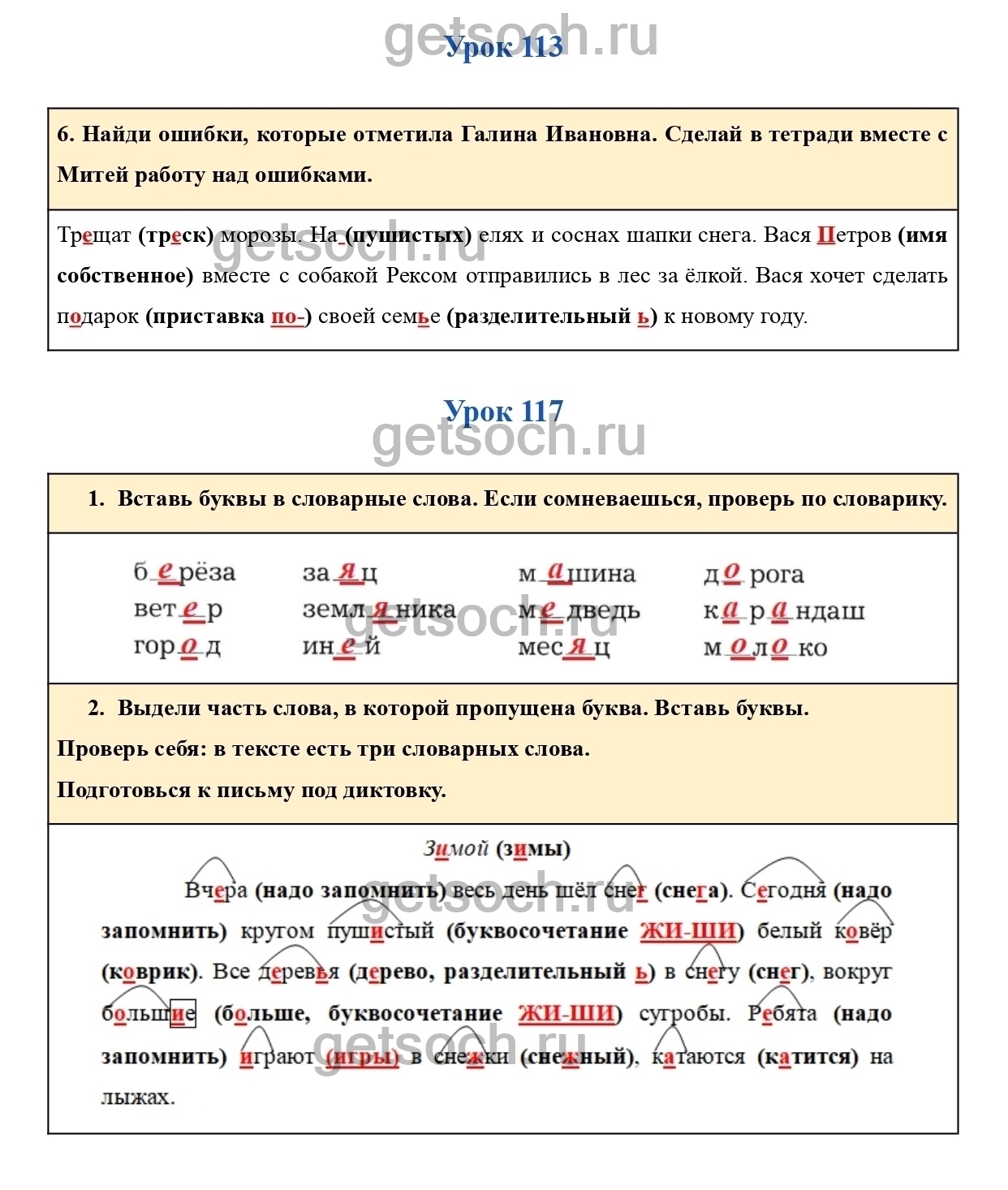 Рассмотрим ответы на задания рабочей тетради по русскому языку для 2 класса Кузнецова Страница 226. Найди ошибки, которые отметила Галина Ивановна. Сделай в тетради вместе с Митей работу над ошибками.