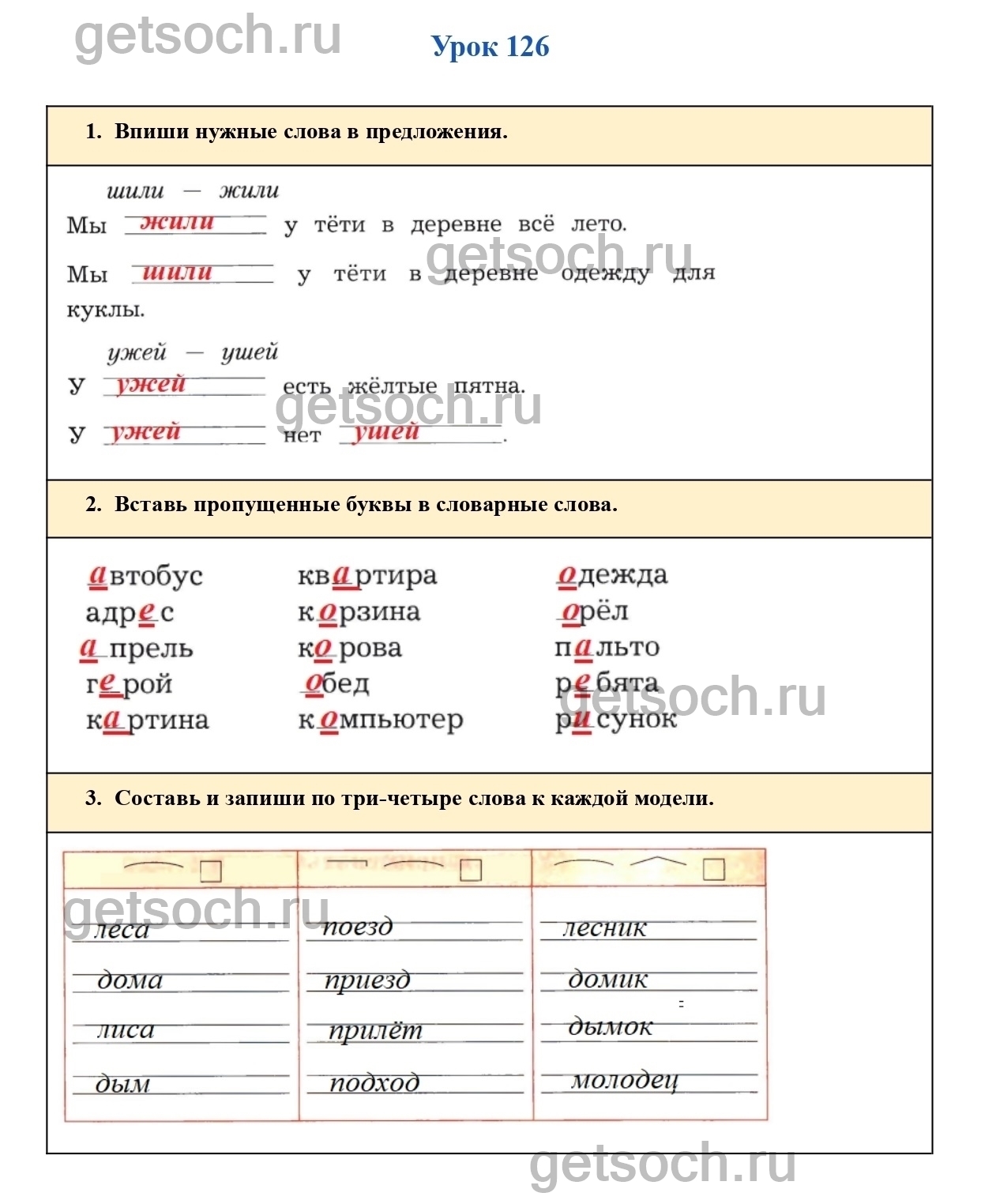 Рассмотрим ответы на задания рабочей тетради по русскому языку для 2 класса Кузнецова Страница 27Впиши нужные слова в предложения.